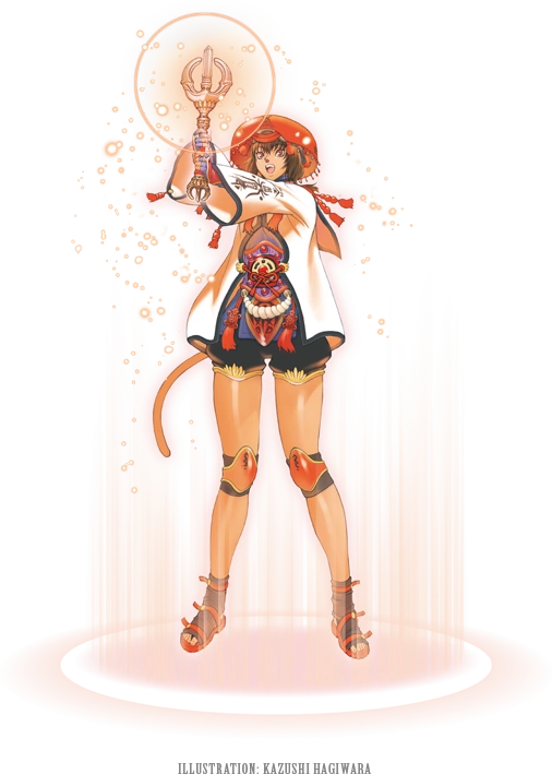 A predominantly female race of hunters who live alongside the tarutaru in windurst, the mithra are easily identified by their characteristic ears, which give them spectacular hearing ability, and their long tails.